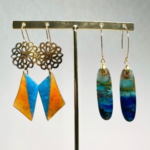 アパタイト×オレンジアゲートとシェルのピアス 天然石 k14gf