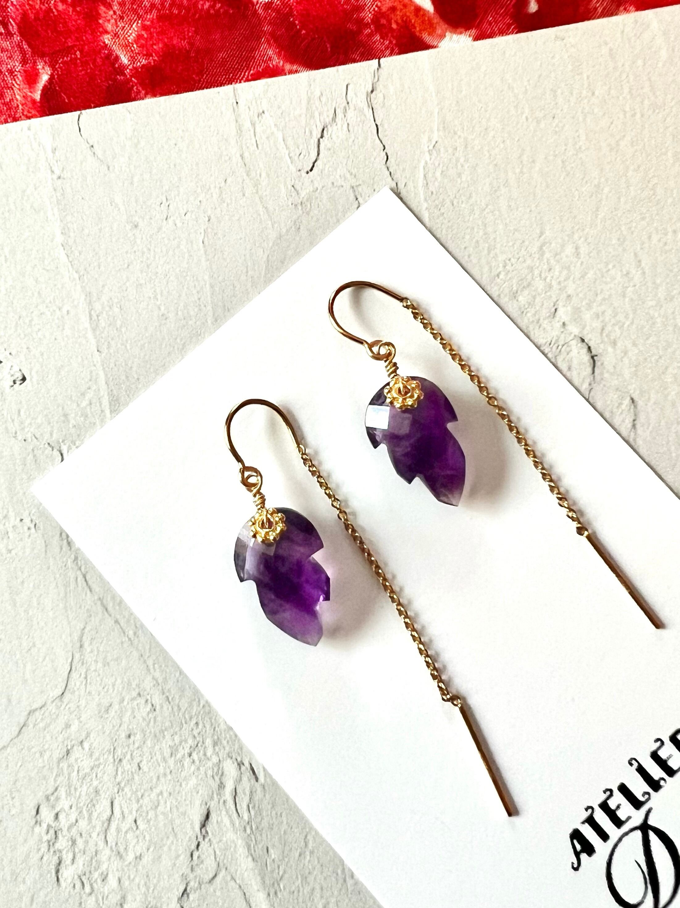 アメジストリーフのアメリカンピアス 天然石 k14gf